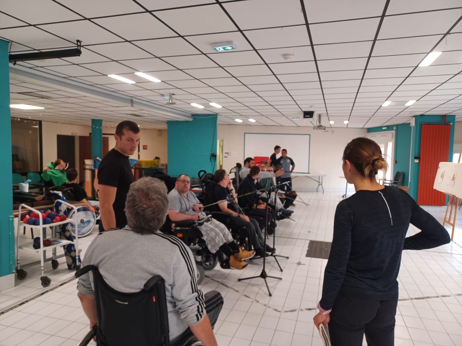 La première phase de l'immersion a eu lieu à l’APF de Combs-la-Ville, où les participants ont pu mettre en pratique leurs compétences en encadrant les résidents lors de séances de Boccia et de sarbacane.