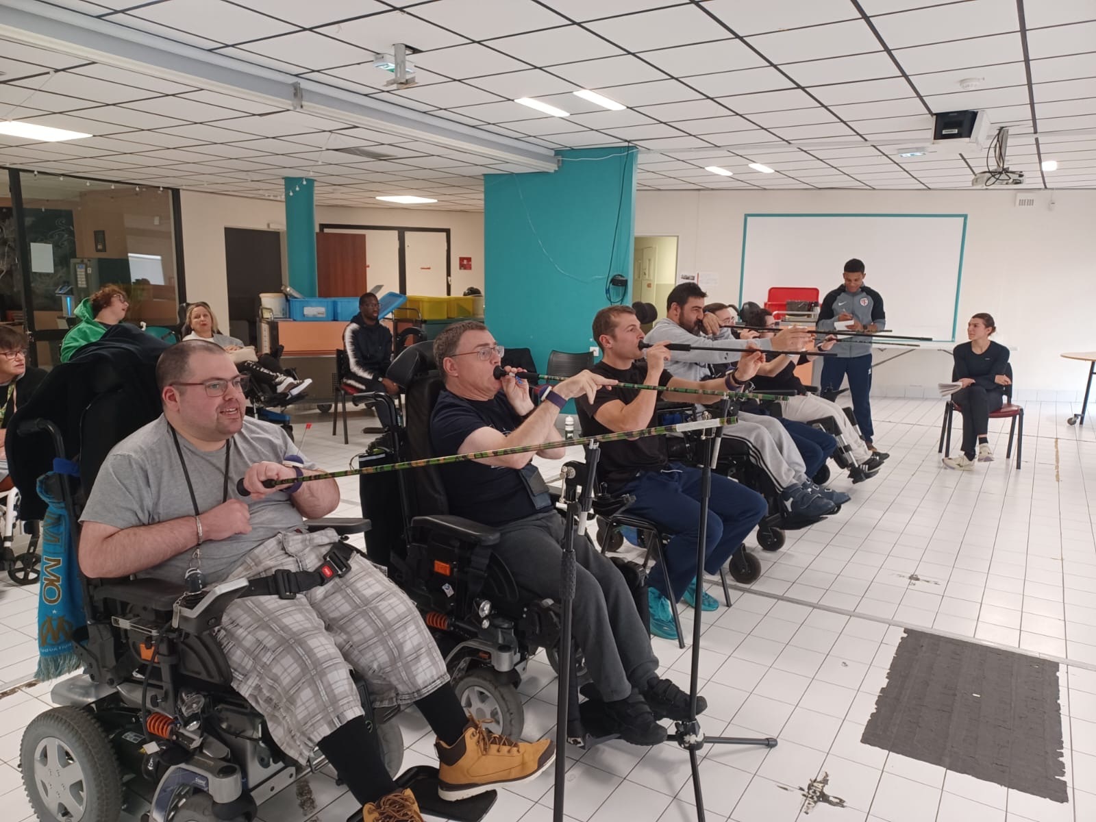 La première phase de l'immersion a eu lieu à l’APF de Combs-la-Ville, où les participants ont pu mettre en pratique leurs compétences en encadrant les résidents lors de séances de Boccia et de sarbacane.